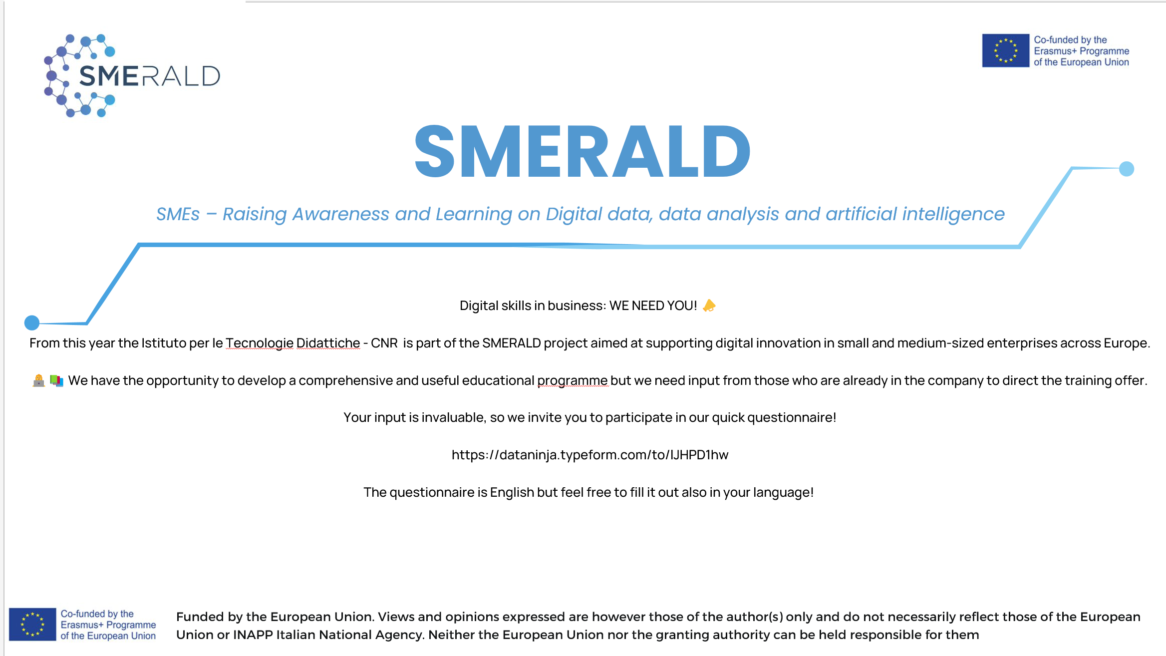We're making steady strides with the SMERALD project to enhance our understanding of the educational needs of European SMEs during digital transformation. We need your insights on the essential digital data and AI skills in Europe. Your feedback will guide us in creating customized educational programs and resources.